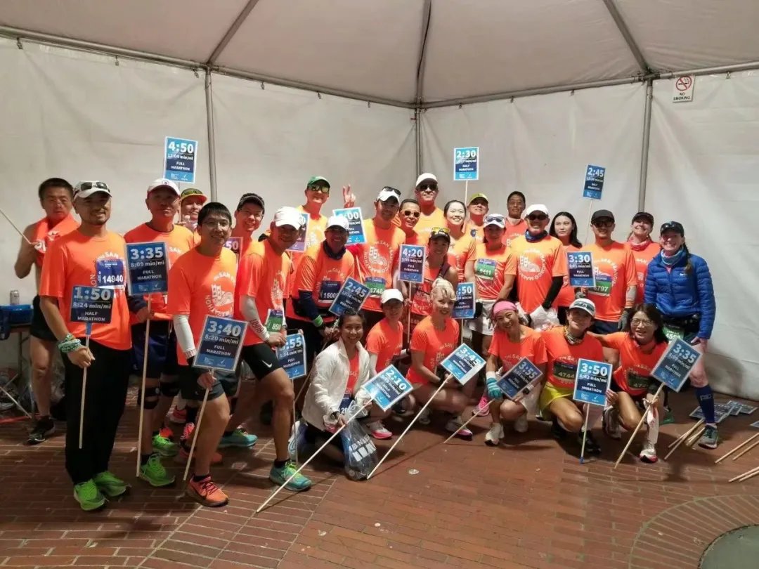 Pacer队伍合影里,北美华人跑团BURN的runner占了大部分。
